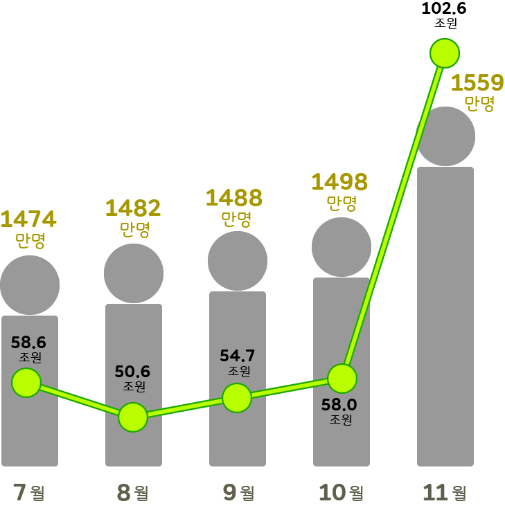 2024년 국내 가상자산 투자자 수와 보유금액 그래프