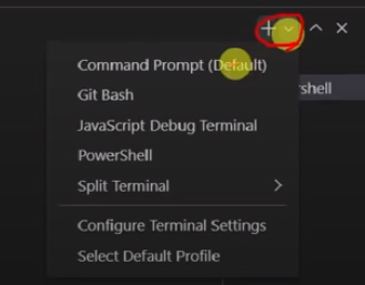 8) 하단 우측 아래 화살표 를 눌러 Command Prompt(Default)를 클릭한다.