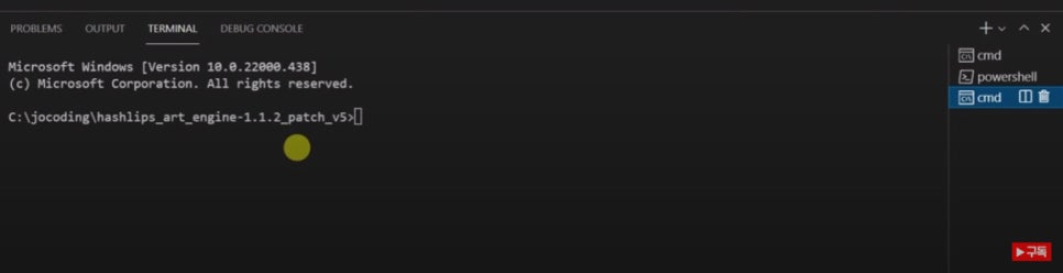 하단부분 :PS C:\jocoding\hashlips_art_engine-1.1.2_patch_V5>라는 문구가 나오는걸 볼 수 있다.