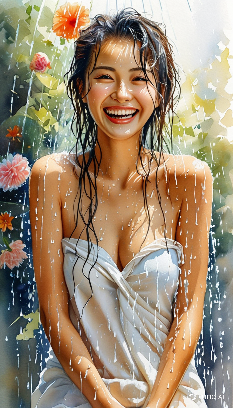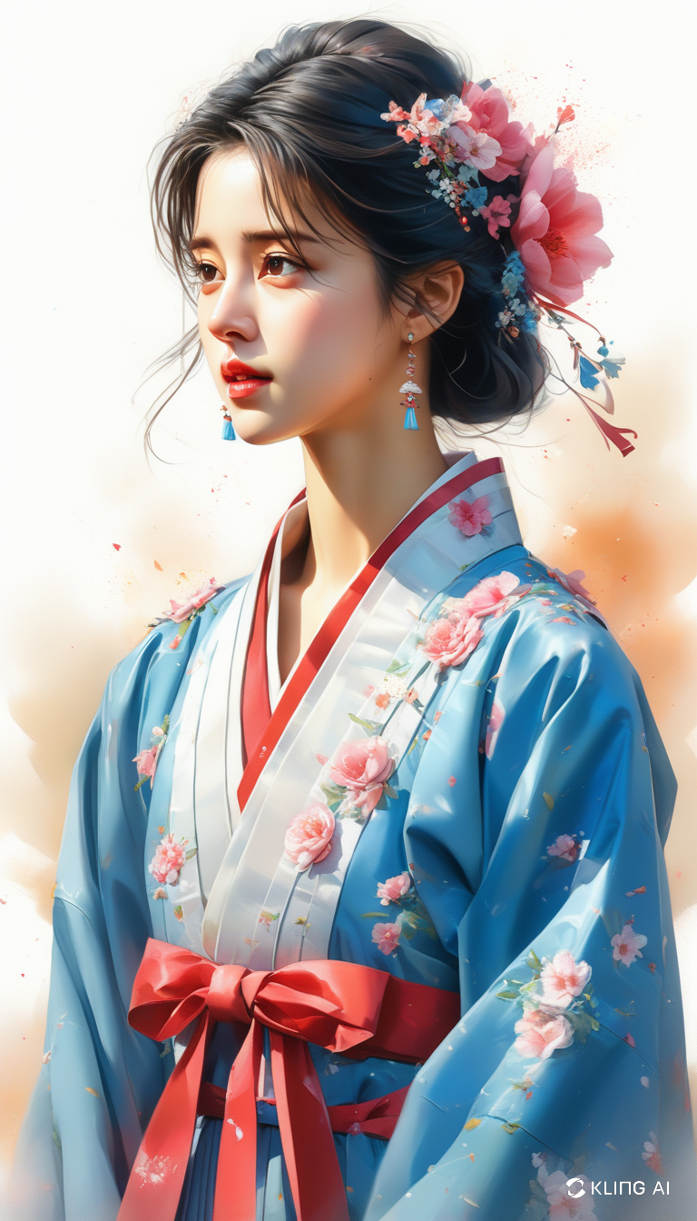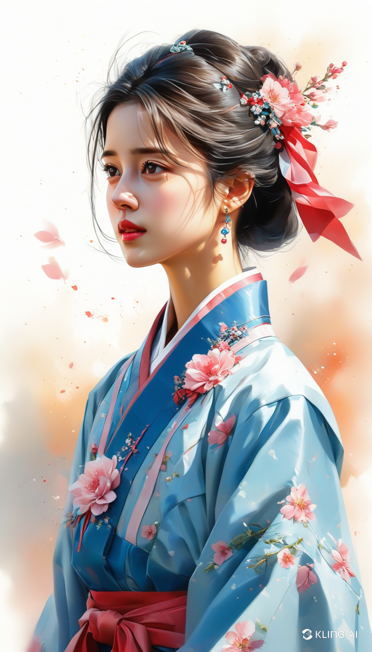 Keywords: soft woman, flowing fabric, pastel tones, gentle mood, elegance, Kling fashion, cinematic portrait
