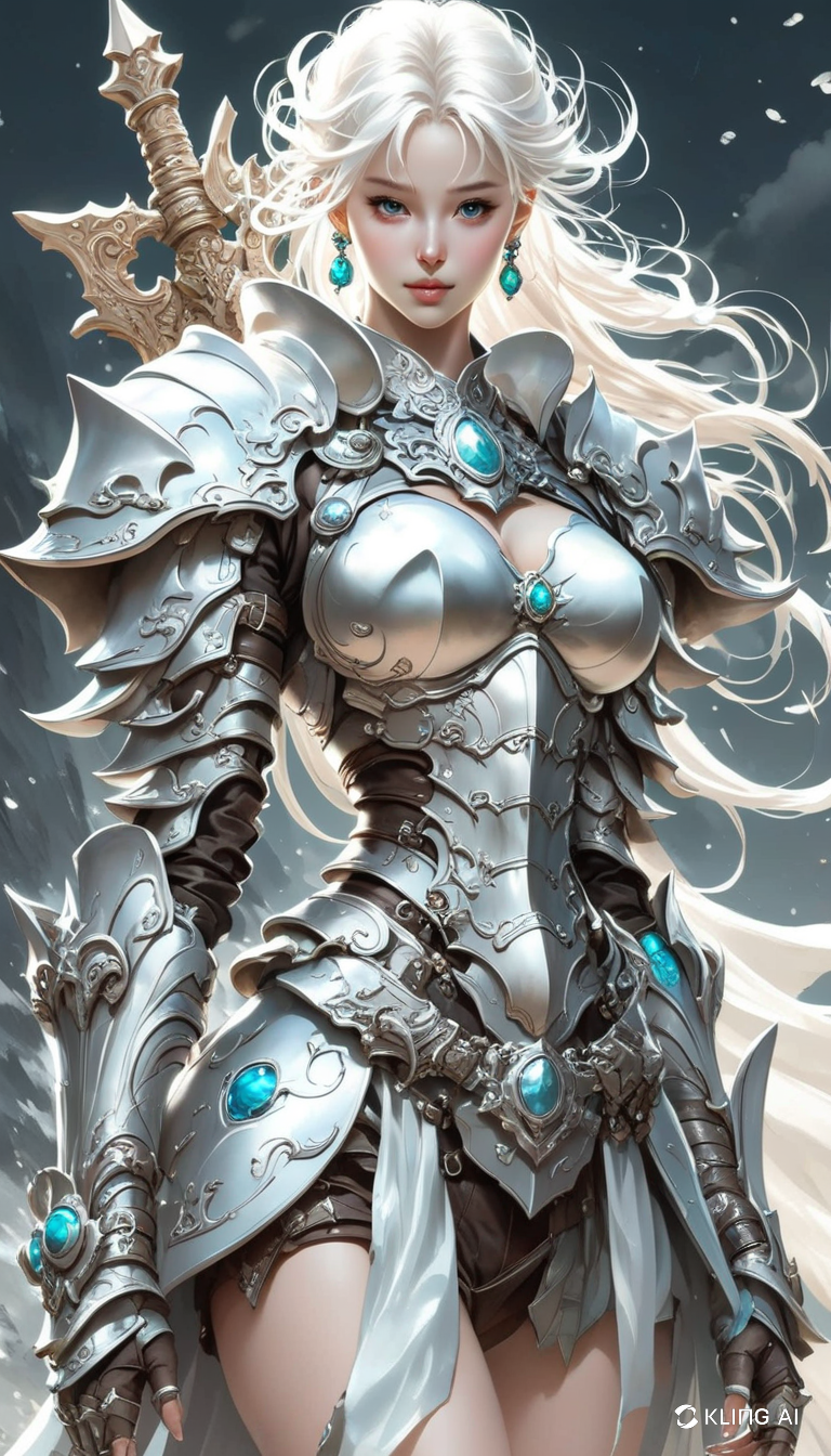 Keywords: strong woman, futuristic fashion, structured design, metallic textures, bold, empowered, Kling style