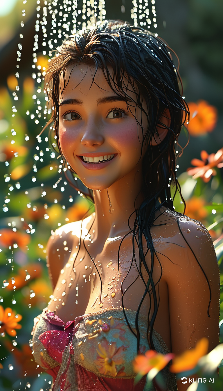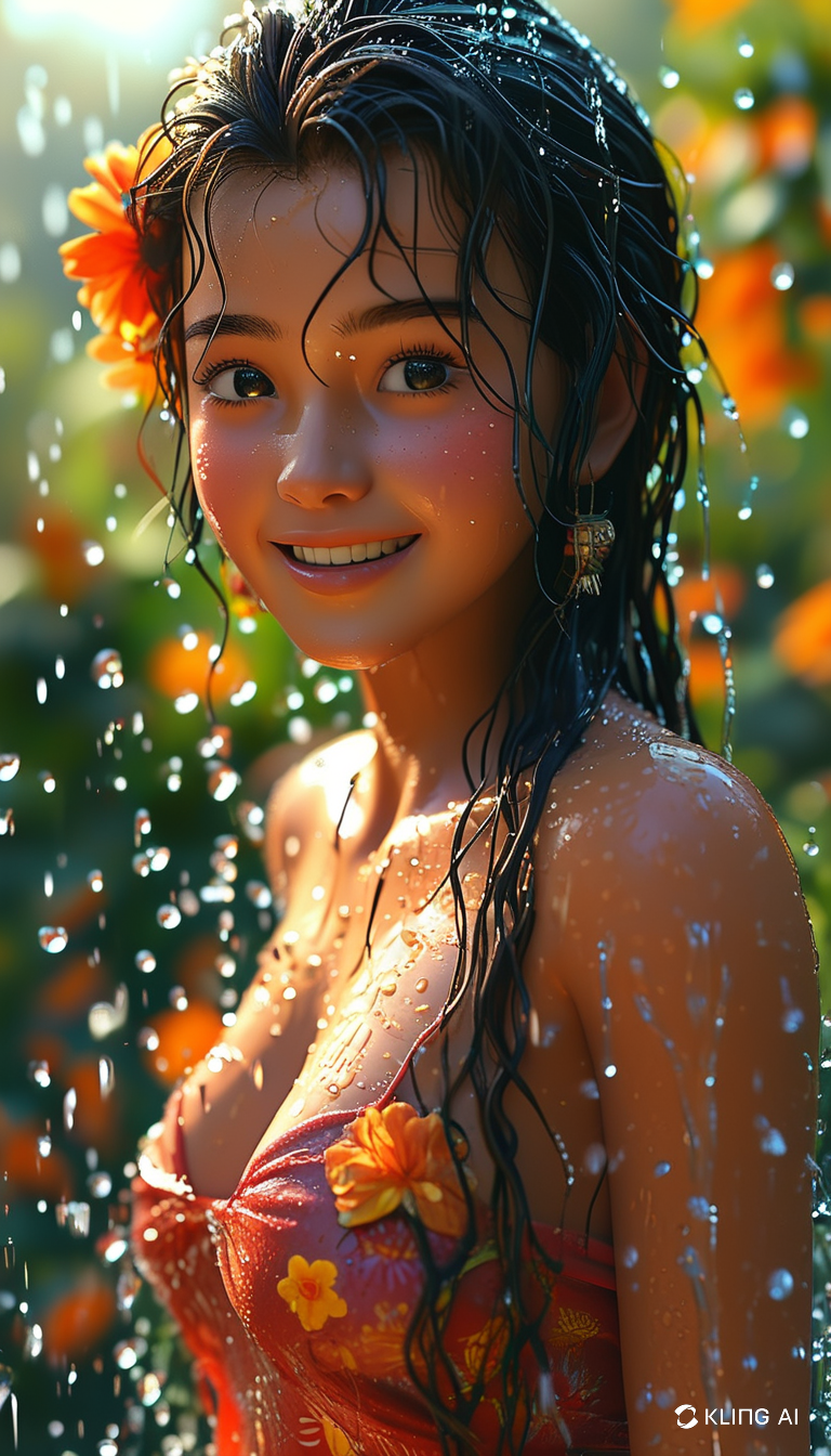 “A graceful, soft-featured woman in a serene garden at dusk, wearing a flowing Kling-style dress with pastel colors and delicate fabric, soft natural lighting, calm and peaceful expression, gentle body language, dreamy atmosphere, cinematic composition, fashion editorial feel.”
