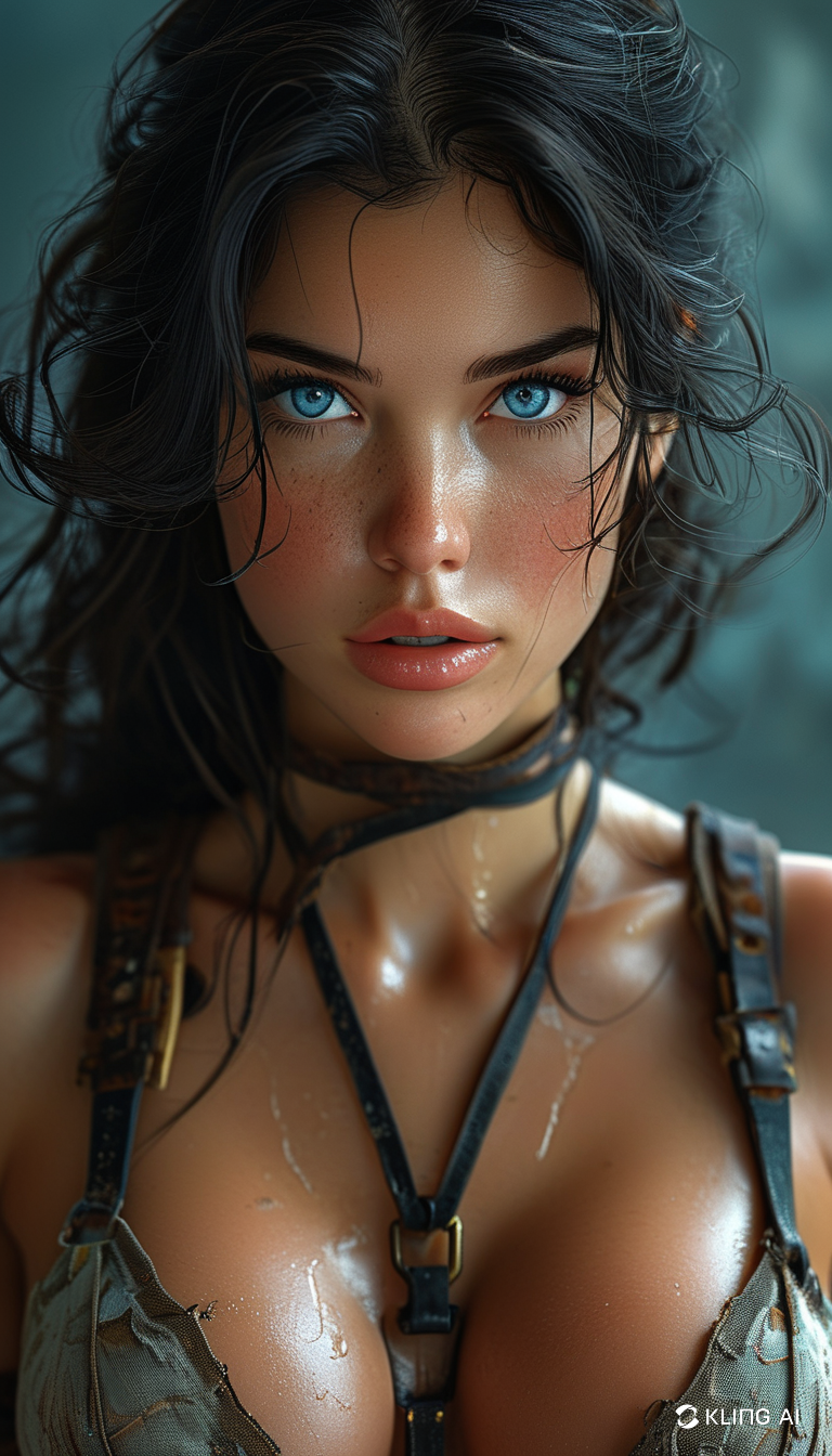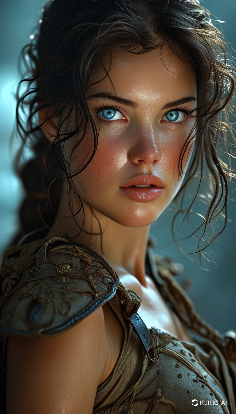 “A confident, powerful woman standing tall in a futuristic urban setting, wearing a structured high-fashion Kling-style outfit with metallic textures and bold colors, dramatic lighting, sharp shadows, cinematic atmosphere, strong gaze, powerful posture, editorial-style photography.”
